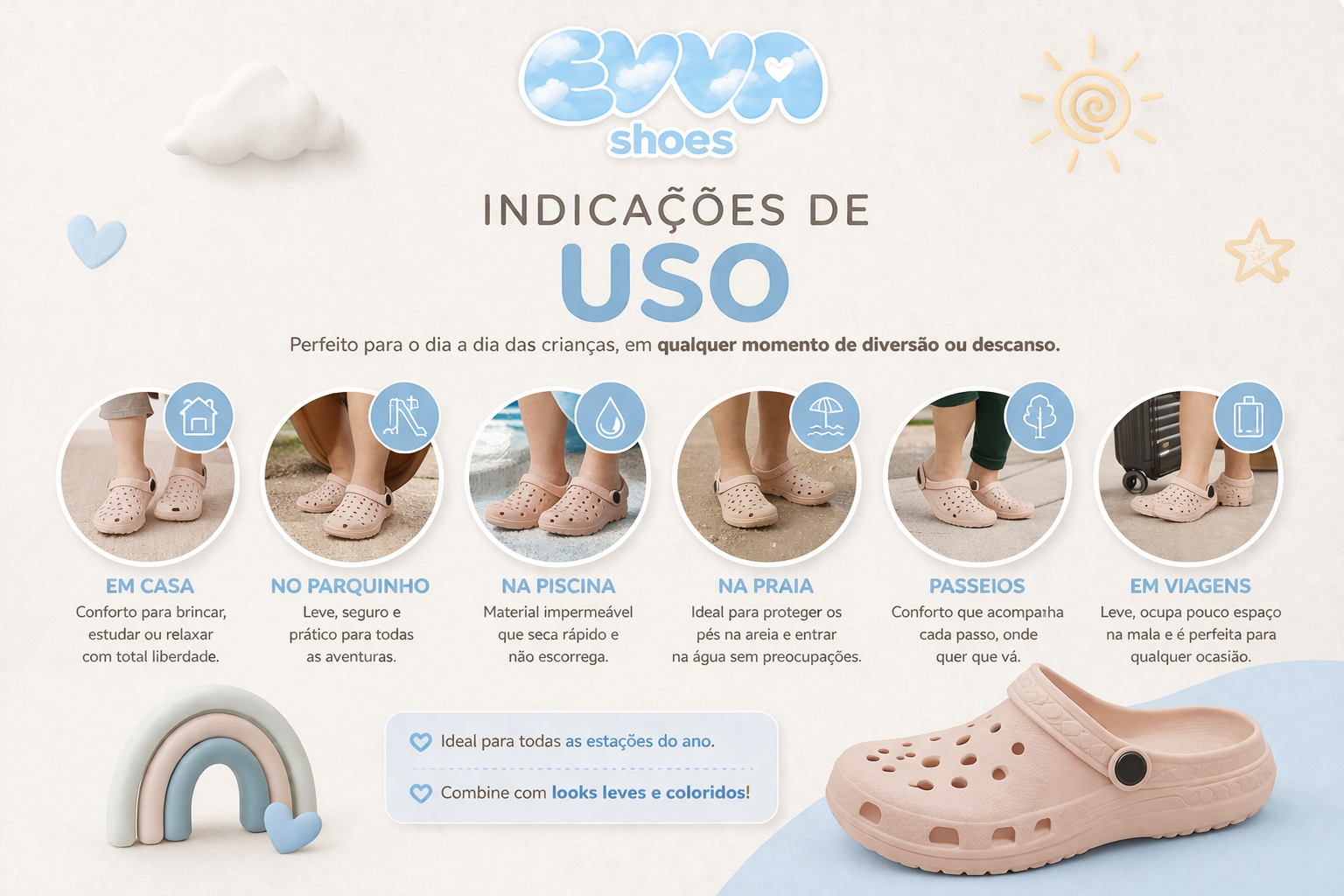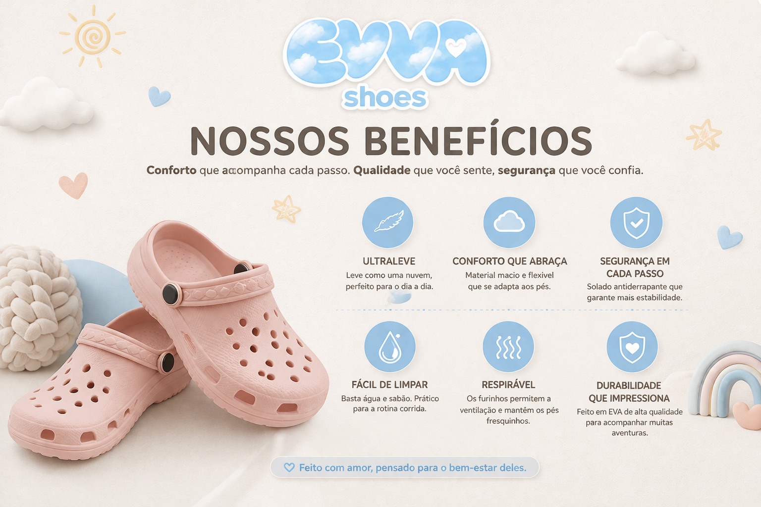 O Babuche Evva Kids combina conforto, durabilidade e um visual divertido que encanta as crianças, com a qualidade que os pais confiam — tudo isso com excelente custo-benefício e alto potencial de venda.