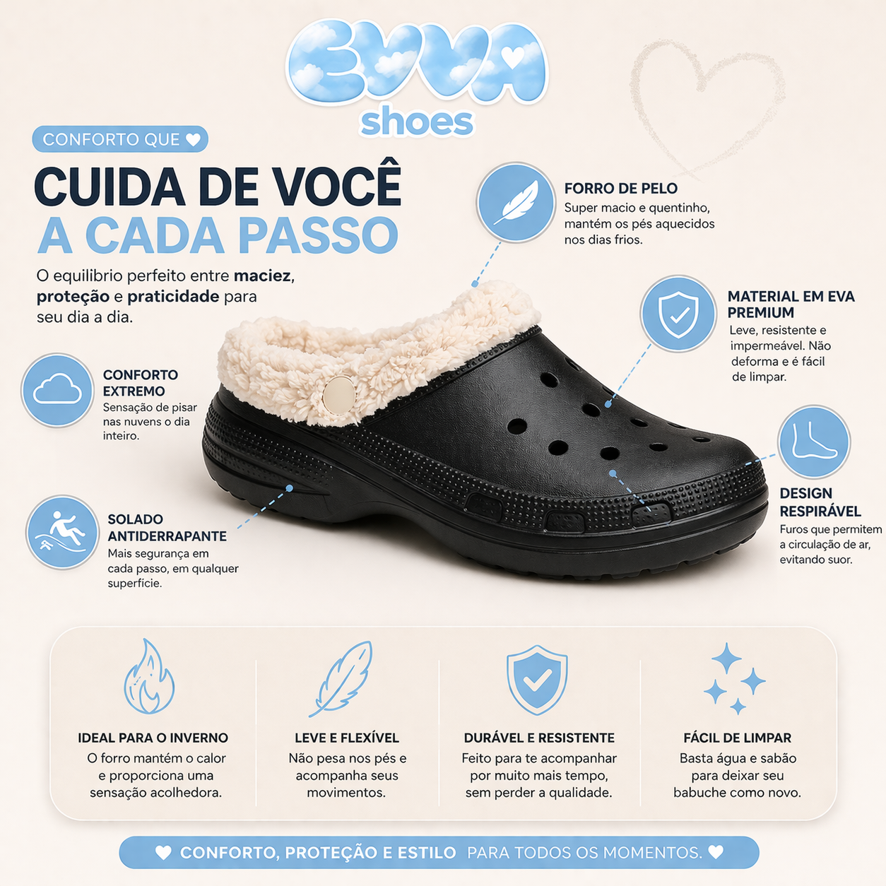 Enquanto outros modelos são apenas simples, este babuche entrega conforto térmico + leveza + segurança, sendo perfeito para quem não abre mão de bem-estar mesmo nos dias frios.