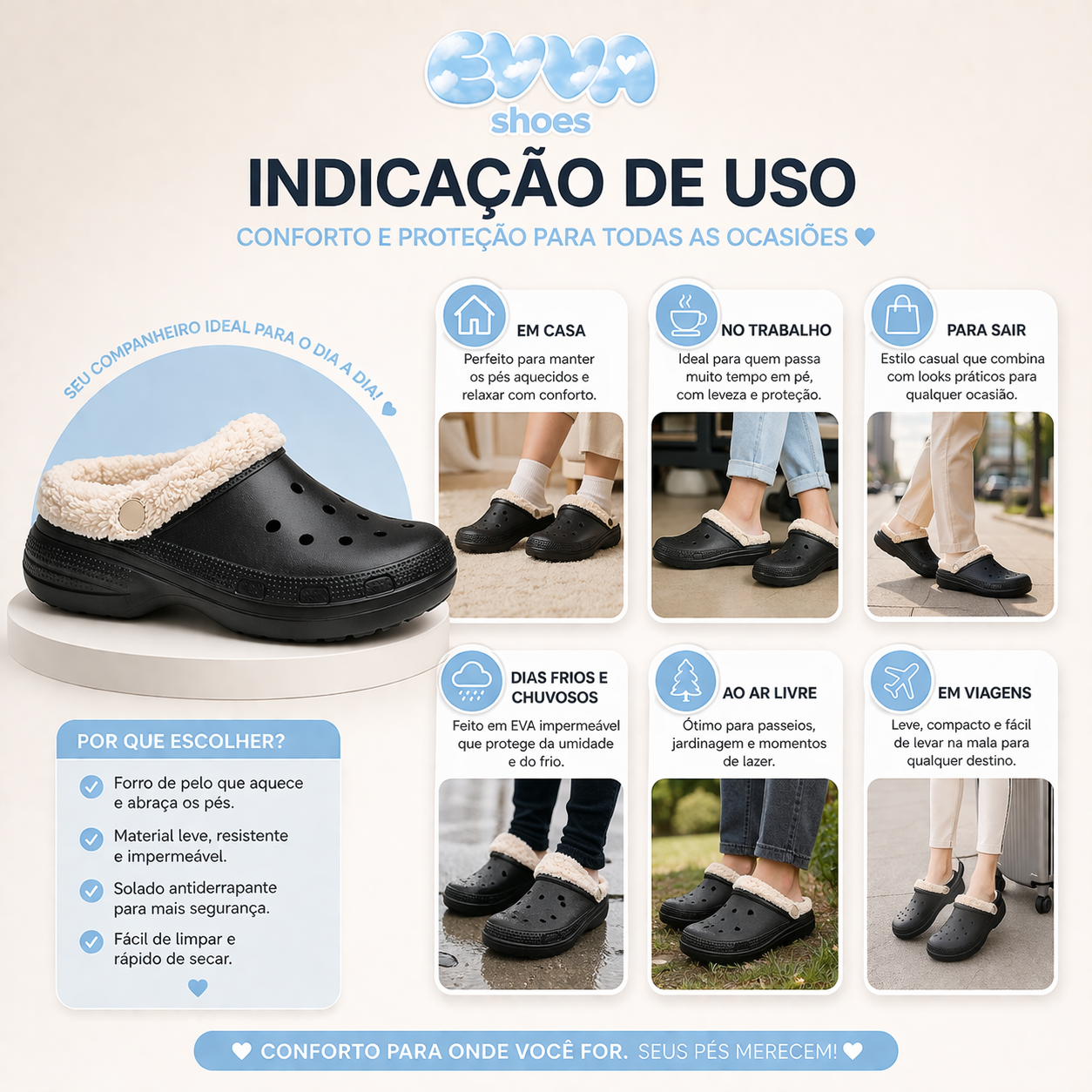 Ideal para uso doméstico, trabalho leve ou lazer, é um calçado versátil que combina estilo moderno com máximo conforto térmico.