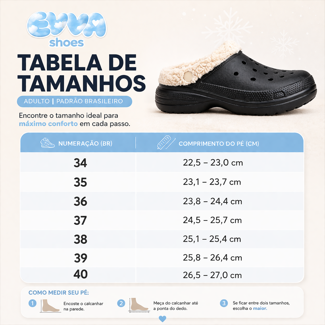 👉 Se preferir mais folgado para usar com meia, escolha 1 número maior